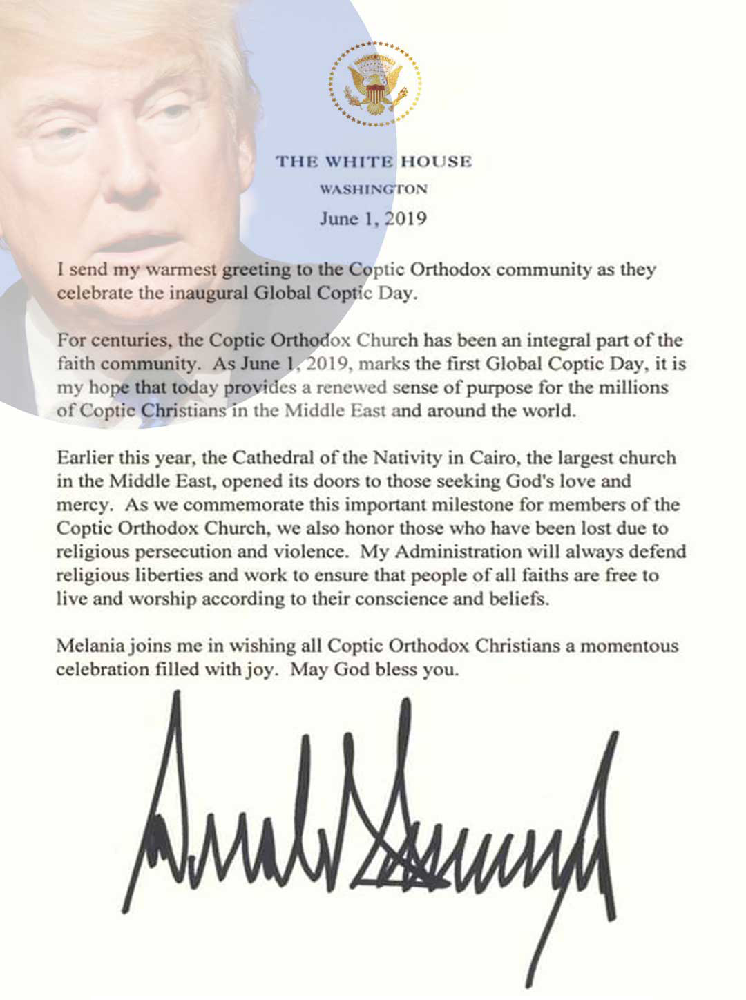 President Donald J. Trump Issues Official Message to Coptic Orthodox Christians for June 1st Global Coptic Day