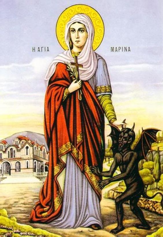 yrdom of the blessed St. Marina, who overcame the Devil. She was one of the daughters of the nobles of Antioch. Her parents were pagan. When her mother died, her father sent her to a nanny to raise her, who was a Christian. She taught Marina the Faith of Christ. When Marina reached the age of fifteen years, her father died.